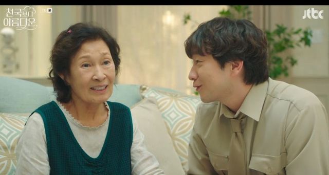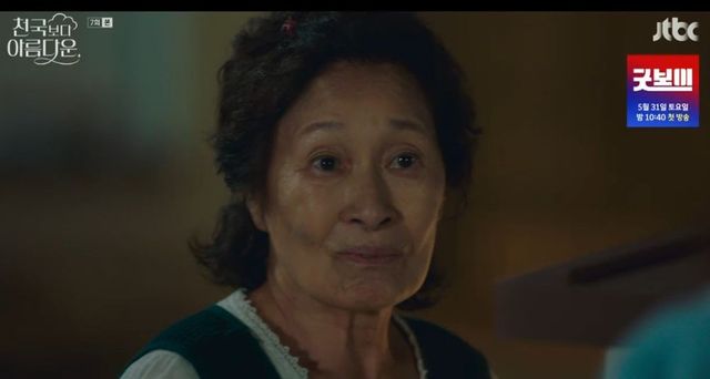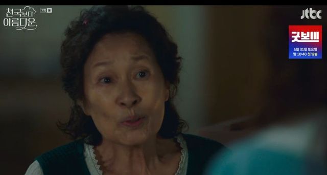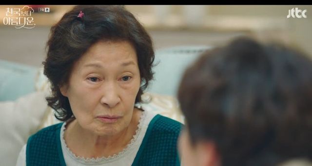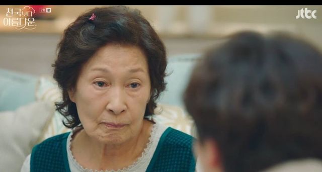 10일 JTBC ‘천국보다 아름다운’에선 시모와의 조우에 경악하는 해숙(김혜자 분)의 모습이 그려졌다.