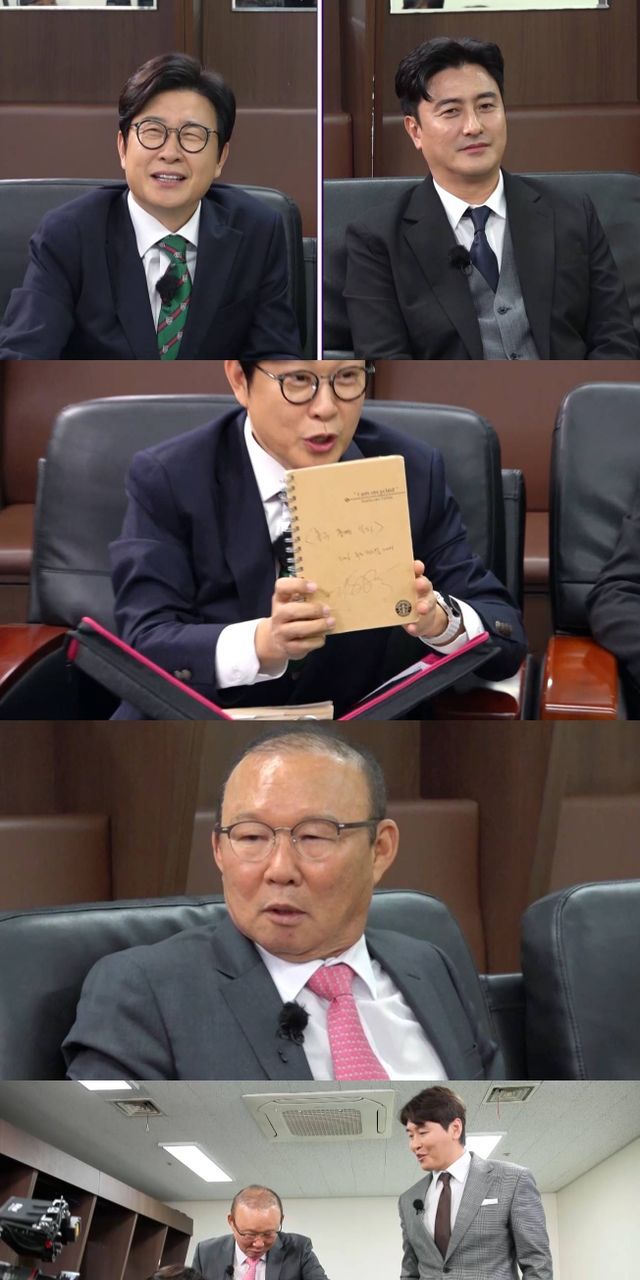 이에 ‘캐스터 경력 23년 차’ 김성주가 자신의 중계 역사를 담은 비밀 노트를 특별히 공개한다. 긴장한 박항서를 위해 자신의 모든 것을 전수하고자 한 것. 이 안에는 현역 시절 안정환, 이동국 등 감독들을 향한 신랄한 평가가 담겨있었다고 해 궁금증을 자아낸다.