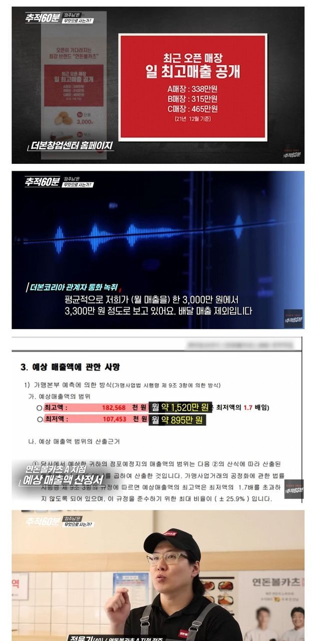 1. 가맹업주 모집할때 월 매출 3000만원으로 홍보함