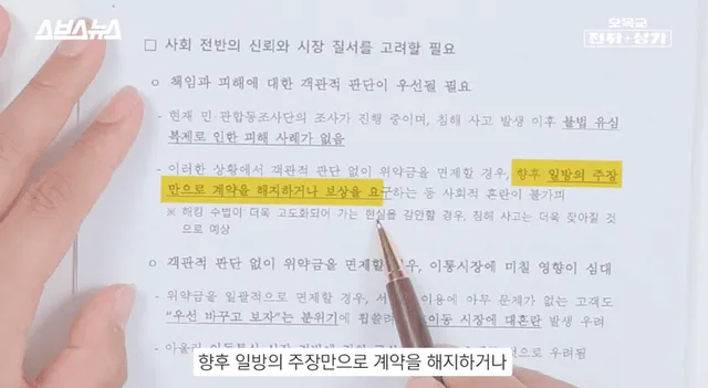 '객관적 판단 없이 위약금을 면제할 경우, 향후 일방의 주장만으로 계약을 해지하거나 보상을 요구하는 등 사회적 혼란이 불가피'