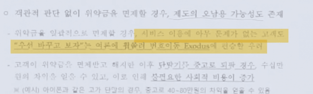 위약금 면제해주면 고객들 싹 다 이탈해서 수조원 손실난다, 못 해준다! (개인적인 사유로 2조를 쓰며