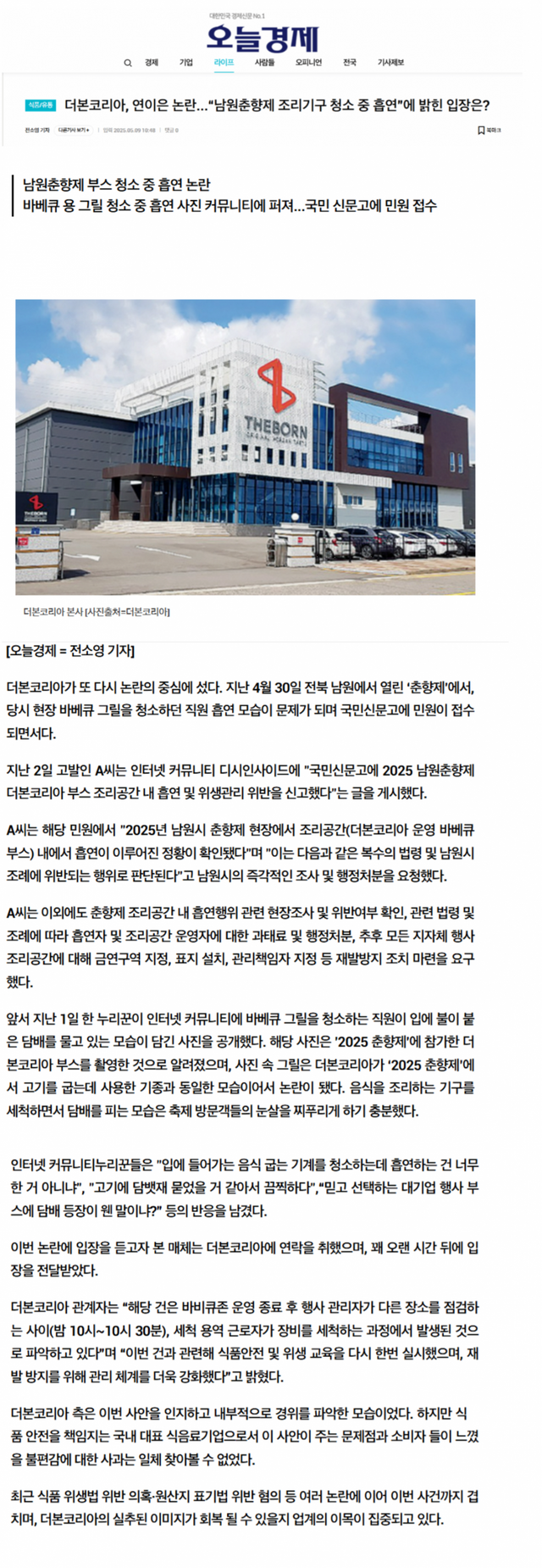 더본코리아 남원춘향제 조리부스 흡연 사실로 밝혀져