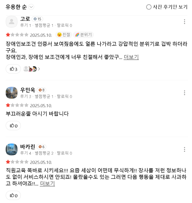 직원랑 경찰 콜라보로 무수히 많은 별점(1)들ㅋㅋㅋ
