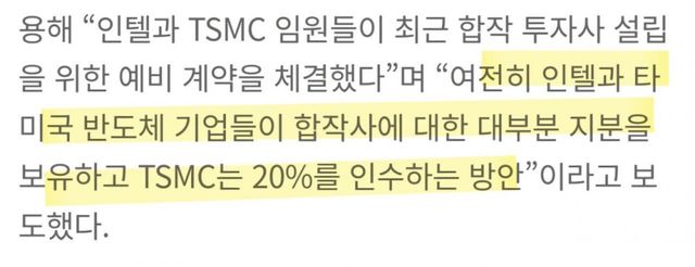 미국과 인텔이 합작사 대부분의 지분을 가지고