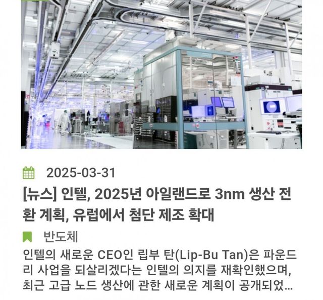 미국 오리건 제외, 인텔 3나노공정은 아일랜드가 처음