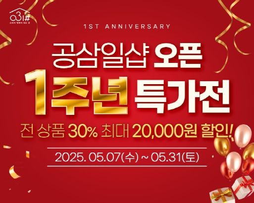 [와이뉴스] 경기도와 경기도주식회사가 운영하는 경기도 사회적경제 쇼핑몰 공삼일샵(031#)이 31일까지 오픈 1주년 기념 온·오프라인 할인 기획전을 진행한다.