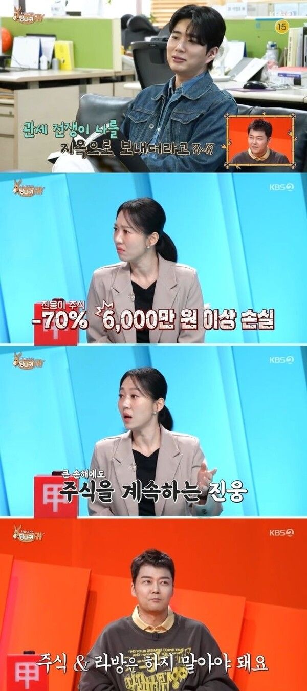 엄 아나운서는 "마이너스 70%라고 한다. 손실만 6000만원이라더라"고 했다.