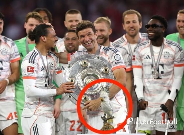독일 ‘스카이 스포츠’는 11일(이하 한국시간) “뮐러가 트로피를 높이 들어 올렸던 자리에 갑자기 작은 앵무새 조각상이 등장했다”라고 보도했다.