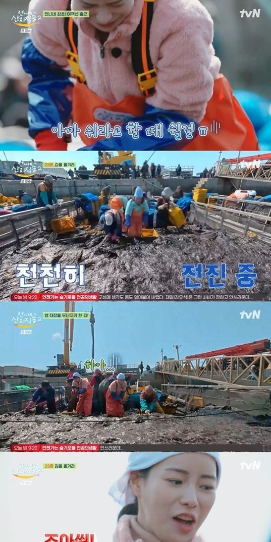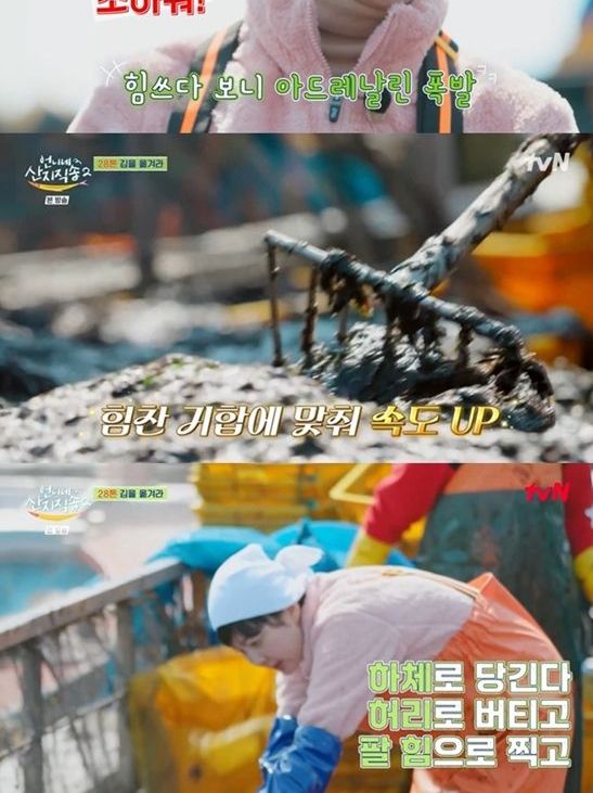 흡사 건설 현장을 방불케 하는 이곳의 정체는 김 조업 현장이었다. 사 남매는 배를 까맣게 뒤덮은 김에 신기해하는 것도 잠시, 곧바로 김 하역 작업에 투입돼 끝이 없는 극한 노동을 시작했다. 김 28톤 하역 작업을 완수해야 하는 그야말로 난이도 최상의 리얼 노동 현장이 펼쳐졌다.