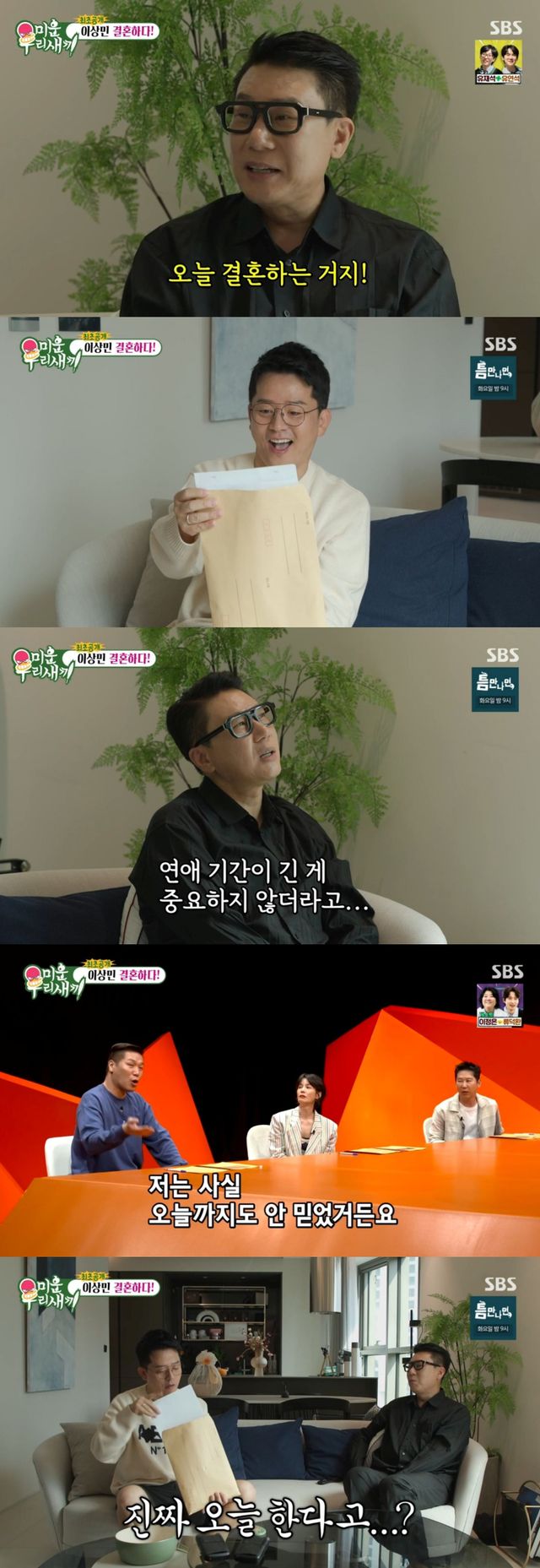 다시 영상으로 돌아가서 이상민은 "다들 너처럼 3년씩 만나고 결혼하고 그러진 않는다. 연애 기간이 긴 게 중요하지 않더라"고 행복한 표정으로 말했다.