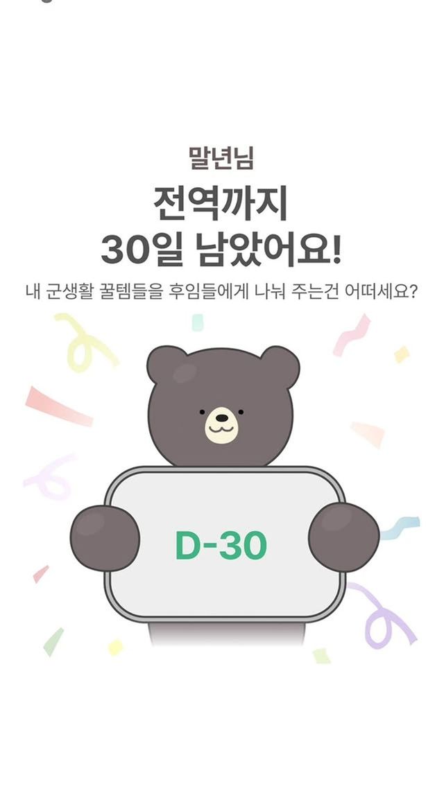 RM은 지난 11일 개인 계정에 “말년님 전역까지 30일 남았어요”라는 문구가 담긴 전역 계산기 화면을 공유했다. 해당 이미지에는 “내 군생활 꿀템들을 후임들에게 나눠주는 건 어떠세요?”라는 메시지도 함께 적혀 있어 군 복무 막바지를 향해 가는 그의 현재 상황을 엿볼 수 있었다.