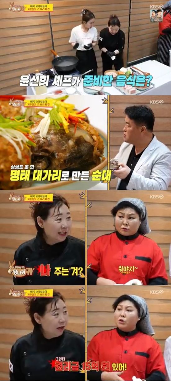 윤선희는 이북 5도 음식으로 식당을 준비 중이라는 이순실에게 "솜씨 보고 싶다. '사당귀' 자리 걸고 해볼까? 요리로 덤벼봐"라고 도발을 했다.