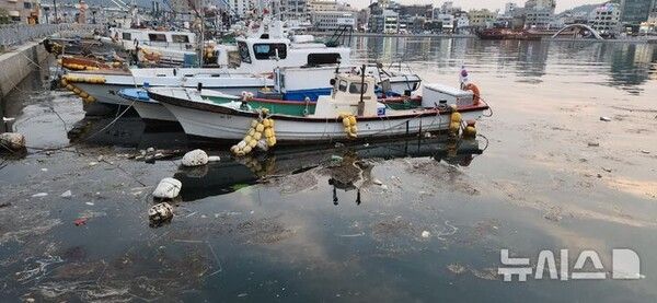 뉴시스 보도에 따르면, 지난 11일 오후 통영시 중앙동·동호동 연안인 강구안에는 둥둥 떠다니는 해상 쓰레기와 육지에서 흘러든 오염물질로 뒤덮였다.