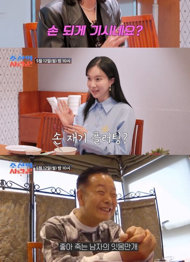그 와중, ’연애보단 사업에 관심있다‘던 김동영은 ”진짜 인기 너무 많으실 것 같다“며 배아현에게 호감을 표했다. 이에 아들의 소개팅을 실시간으로 모니터링 중이던 김학래는 터져 나오는 웃음을 참지 못했다. 그런가 하면 김동영은 김나희에게 ’손바닥 대보기‘ 플러팅을 시전했고, 김학래의 소개팅 만족도는 더욱 높아졌다.