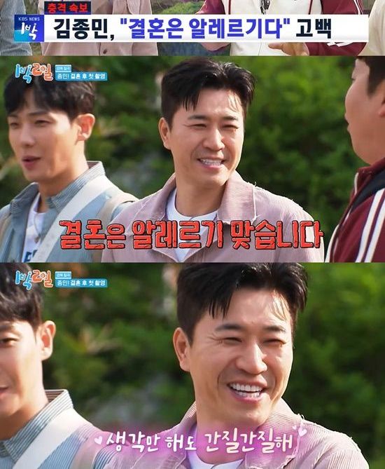 11일 방송된 KBS 2TV '1박 2일 시즌4'에서는 김종민이 결혼을 알레르기에 비유하는 모습이 전파를 탔다.
