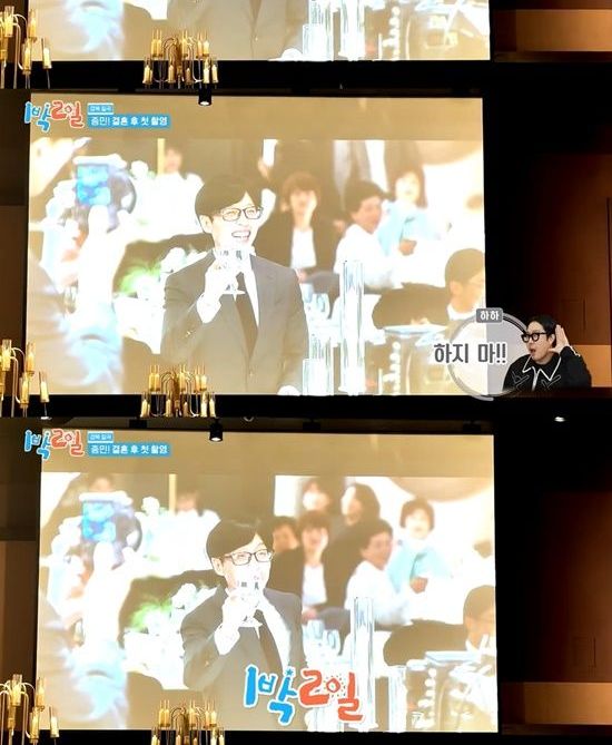 자료화면에는 실제 김종민의 결혼식에서 딘딘이 유재석에게 "재석이 형이 ‘1박 2일’ 외치는 걸 보고 싶다더라"며 부탁했다. 당시 유재석과 함께 '런닝맨'에 출연 중인 하하는 "하지 마!"라며 말렸지만, 유재석은 웃으며 "'1박 2일!'"을 외쳤다.