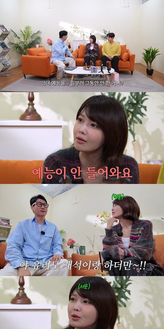 이에 지석진은 "에이 거짓말 하지 마라. 유리도 (유)재석이랑 (예능) 하더만"이라고 반응했는데, 최수영은 "그러니까. 저 좀 약간 서운하다. 난 안 불러줘서. 난 유재석 라인에 안 끼워주고"라며 서운해했다.