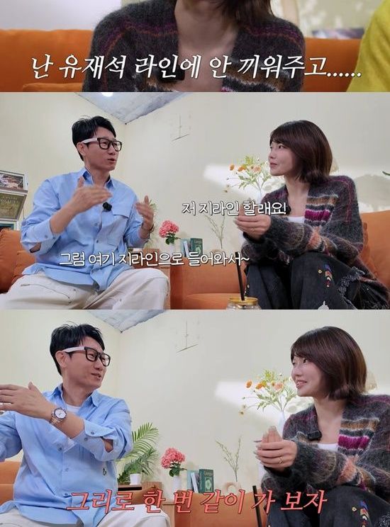 그러면서 "저 지라인 할래요"라고 말했고, 지석진은 "그럼 여기 지라인으로 들어와서, 그리로 같이 가보자"고 유라인으로의 합류를 언급해 웃음을 줬다.