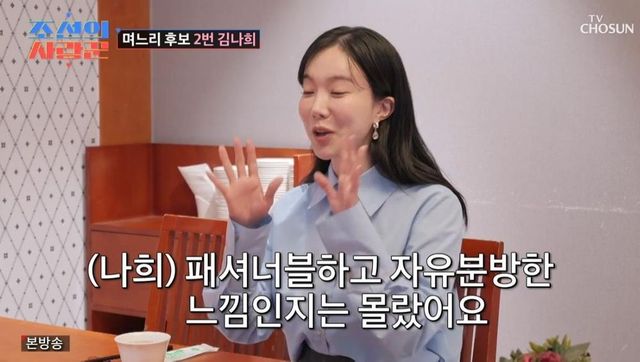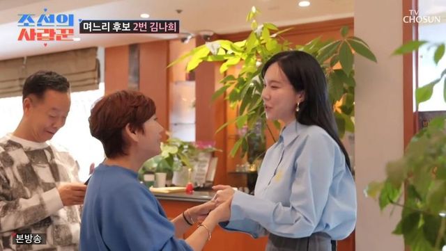 이날 두번째 맞선녀로는 김나희가 등장했다. 김나희는 KBS 28기 코미디언 출신으로 2기 임미숙의 직속 후배였다. 임미숙은 “너무 예쁘다. 후배가 며느리가 되면 너무 좋다”라며 “우리 아들 잘 부탁해”라고 말했다.