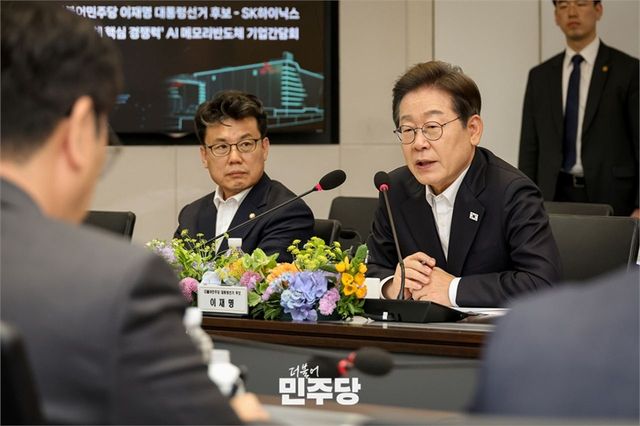 더불어민주당 이재명 대통령 후보가 지난달 28일 경기도 이천시 SK하이닉스 이천캠퍼스에서 열린 'K-반도체' AI메모리반도체 기업 간담회에 참석했다. (사진=더불어민주당)