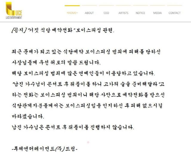 사기인 것을 직감한 A씨는 남진 소속사 홈페이지에 들어갔고,“가수 남진 님은 콘서트 후 어떤 뒤풀이도 예정돼 있지 않다”는 공지를 보게 됐다.
