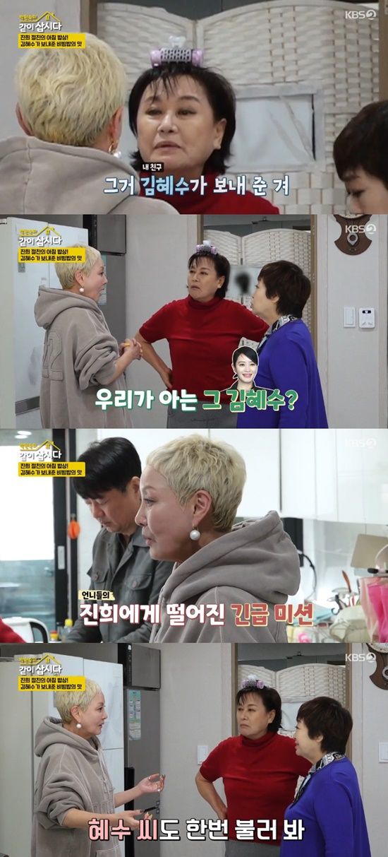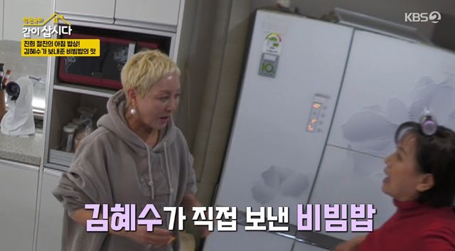 홍진희는 비빔밥에 대해 "그거 혜수가 보내 준거다. 한 달에 한 번 나한테 보내준다고 하지 않았냐"고 자랑했다.