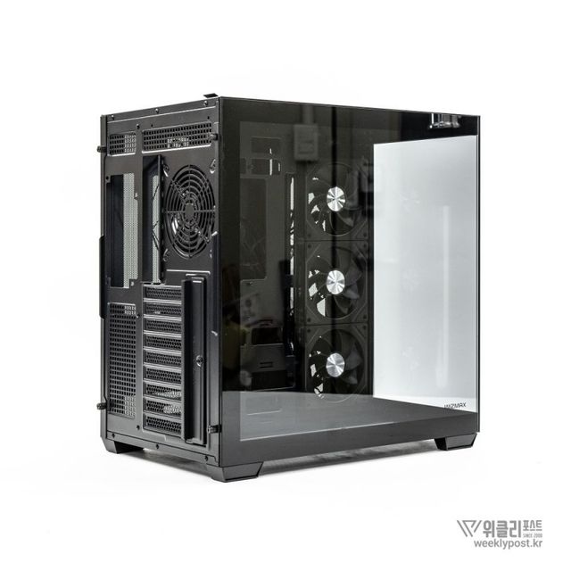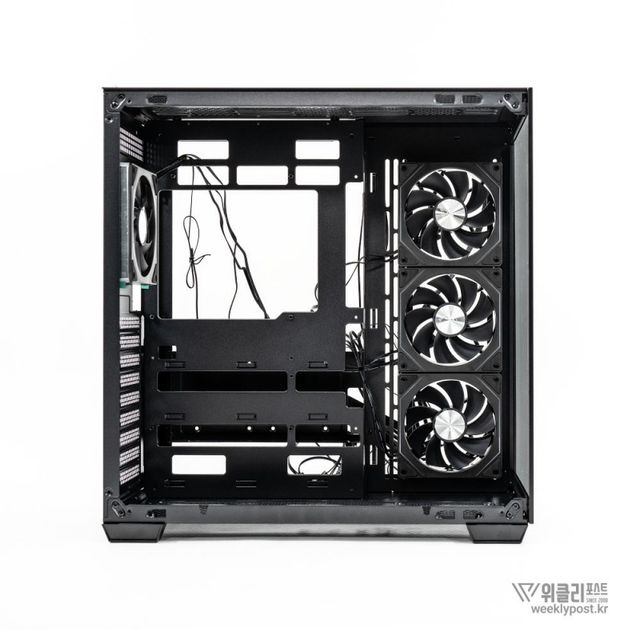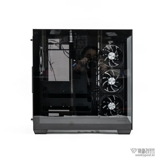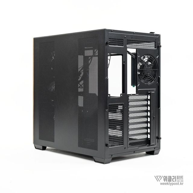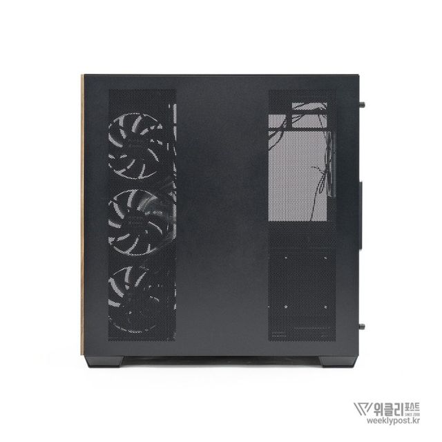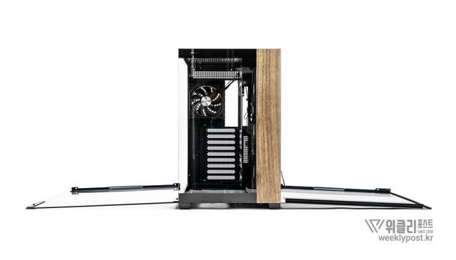 측면은 강화유리 패널로 완전히 개방되어 있다. ‘풀 파노라믹 디스플레이(Full Panoramic Display)’라 명명된 디자인을 통해 시스템 내부를 자유롭게 감상 가능하다. 따라서 LED 혹은 LCD가 적용된 PC 부품을 장착한다면 효과가 더 두드러진다.