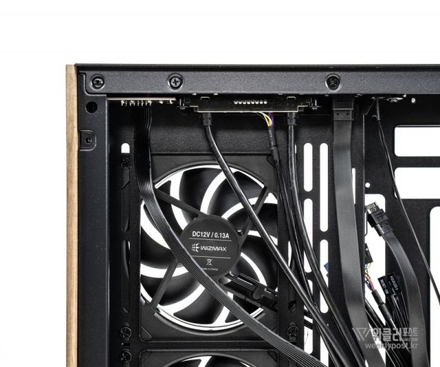 수랭식이 아닌 공랭식 냉각팬을 사용할 경우를 대비한 공간 확보도 인상적이다. 위즈맥스 우드리안 맥스의 주 공간은 높이 최대 160mm 공랭식 쿨러 장착 공간이 제공된다.