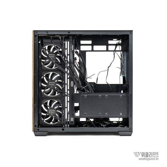 측면, 상단, 하단에 각각 최대 360mm 규격의 일체형 수랭식 쿨러 배치가 가능한 점도 눈에 띄는 부분이다. 사용자가 원하는 위치에 고성능 냉각 장치 설치가 가능하도록 배려한 것이다. 일체형 수랭식 쿨러가 장착되지 않은 부분에는 별도로 120mm 냉각팬 설치가 가능하다. 360mm 일체형 수랭식 쿨러를 1개 배치했을 경우, 최대 7개에 달하는 120mm 냉각팬 설치를 지원한다. 제품에는 aRGB 및 PWM 기능이 포함된 120mm 냉각팬 4개가 기본 장착되어 있다. 취향에 따라 상단과 측면에 최대 140mm 냉각팬 2개 장착이 가능하다.