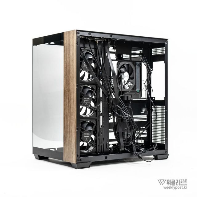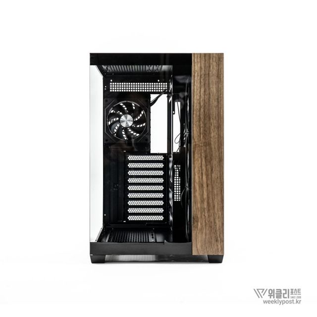 위즈맥스 우드리안 맥스의 또 다른 특징은 주요 시스템 부품이 배치되는 주 공간과 파워서플라이, 저장장치, 연결 케이블 등이 배치되는 보조 공간을 따로 배치했다는 점이다. 이른바 ‘듀얼 챔버(Dual Chamber)’ 설계를 채택한 것이다. 일반적인 PC 케이스는 상단에 주 공간, 하단에 보조 공간을 둔다. 사용에 문제가 없는 구성이지만, 공간에 따라 파워서플라이 조립이 번거롭다. 반면, 공간을 좌우로 분리하면 메인보드에 케이블 연결이 한결 수월하다.