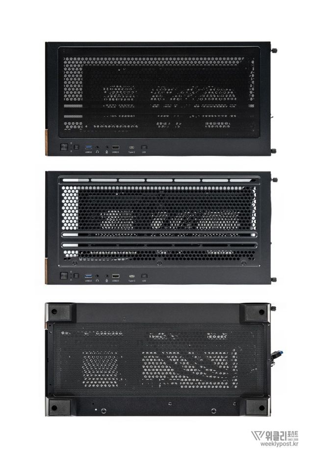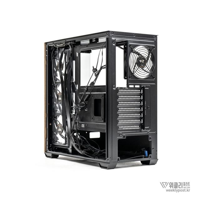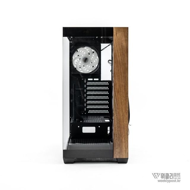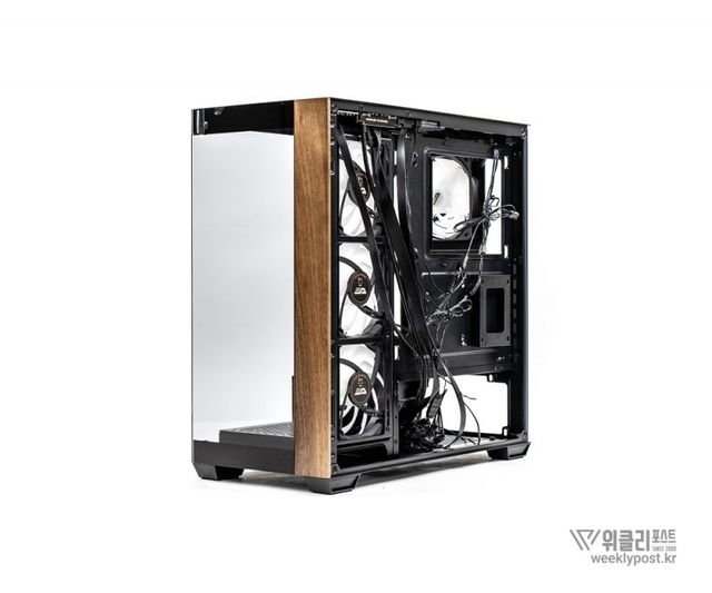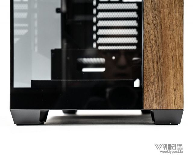 첫 번째는 PC 케이스에 목재를 사용할 만한 공간이 그리 많지 않다는 점일 것이다. 케이스 측면은 이미 강화유리 버전이 정석인 것처럼 자리를 잡았고, 내부의 높은 열을 처리하고 다수의 하드웨어가 장착되는 기반이 되어야 하는 섀시의 경우 철판 이외에 대안이 없다.