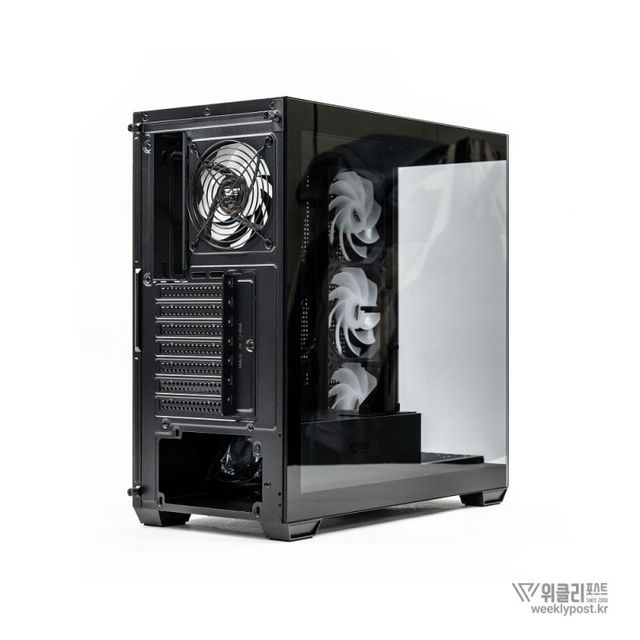 기본 지원하는 측면 120mm 쿨링팬은 블레이드가 반대방향으로 장착된 리버스 타입이라서 흡기를 유지하면서도 RGB 효과를 극대화할 수 있다. 후면에 장착된 C7AM ARGB 120mm 쿨링팬과 측면에 3개 장착된 C7RA 120mm 쿨링팬 모두 ARGB를 지원하므로 사용자의 의도에 맞는 다양한 연출이 가능하다.