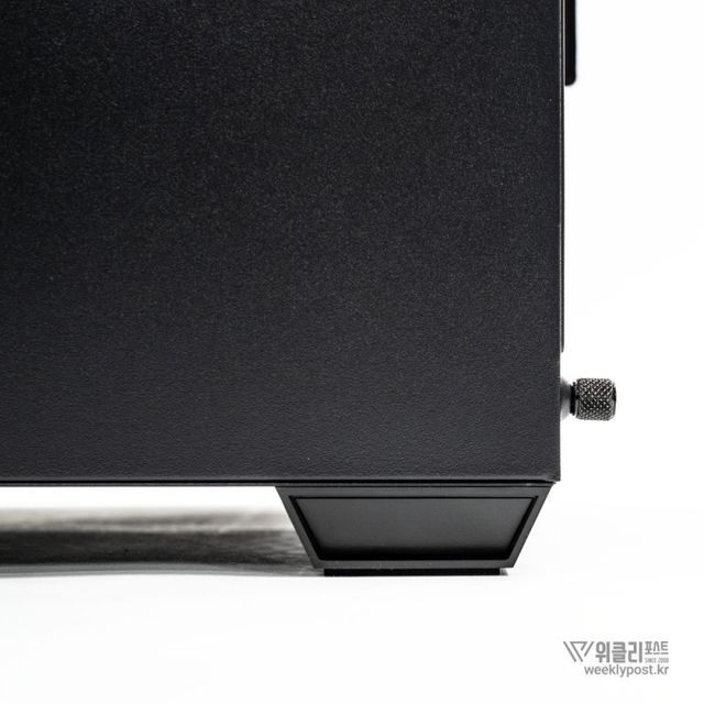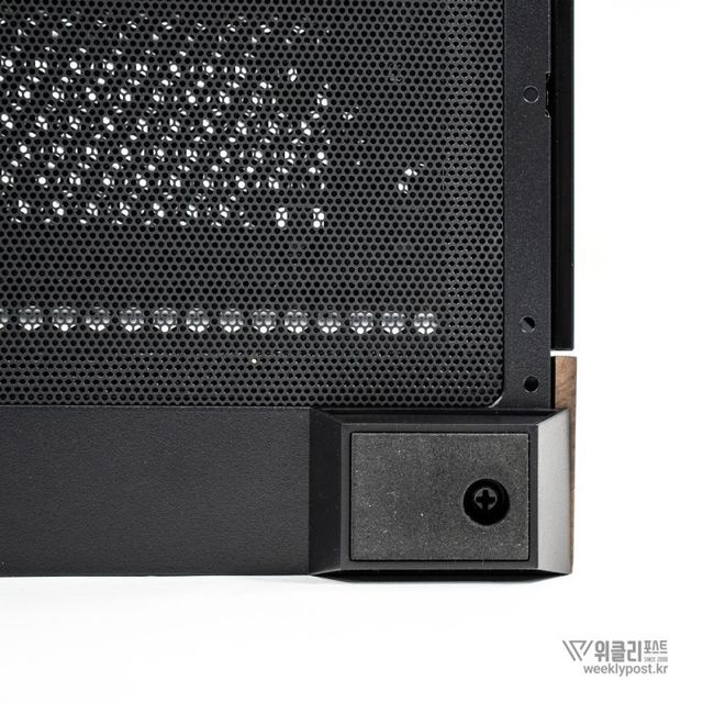 사이드 패널의 장착 방식도 간단하다. 하단의 후크 부분을 케이스의 홈에 끼우고 상단을 닫아주면 마그네틱 방식으로 착 달라붙는다. 다만, 이런 방식은 예기치 않은 충격으로 패널이 이탈하기도 하는데, 이 같은 사고를 방지하기 위해 후면에 핸드스크류도 하나 추가돼 있다. 조립을 마친 이후 핸드스크류를 조여주면, 자칫 실수로 가해지는 충격으로 사이드 패널이 이탈할 염려가 없다.