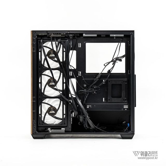 DS900 ARGB 우드가 긍정직인 이유는 꽤나 많다. 그다지 크지 않은 미들타워 케이스임에도 구조가 효율적이고 조립이 쉽다. 선정리 역시도 간단하다. 여기에 3개의 리버스 쿨링팬을 포함한 4개의 120mm 쿨링팬 지원으로 별도의 쿨링팬을 준비하지 않아도 좋을 만큼 지원도 충분하다. 와이드뷰 스타일 케이스들이 높이가 높거나 폭이 넓은 등 기존 미들타워의 비율을 버거워하는 것과 달리 미들타워의 이상적인 가로세로 비율을 유지하며 스타일을 잡아낸 것도 인상적이며, 우드 패널 적용으로 한층 고급스러워진 것 역시 긍정적이다.