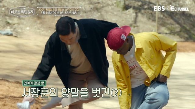 ‘연예계 대표 깔끔 왕’ 서장훈은 이번 방송 최초로 맨발 걷기에 도전한다. 조웅래 회장은 서장훈에게 다짜고짜 “신발 벗고 맨발로 한번 걸어보셔라”라고 제안해 그를 당황스럽게 만든다.