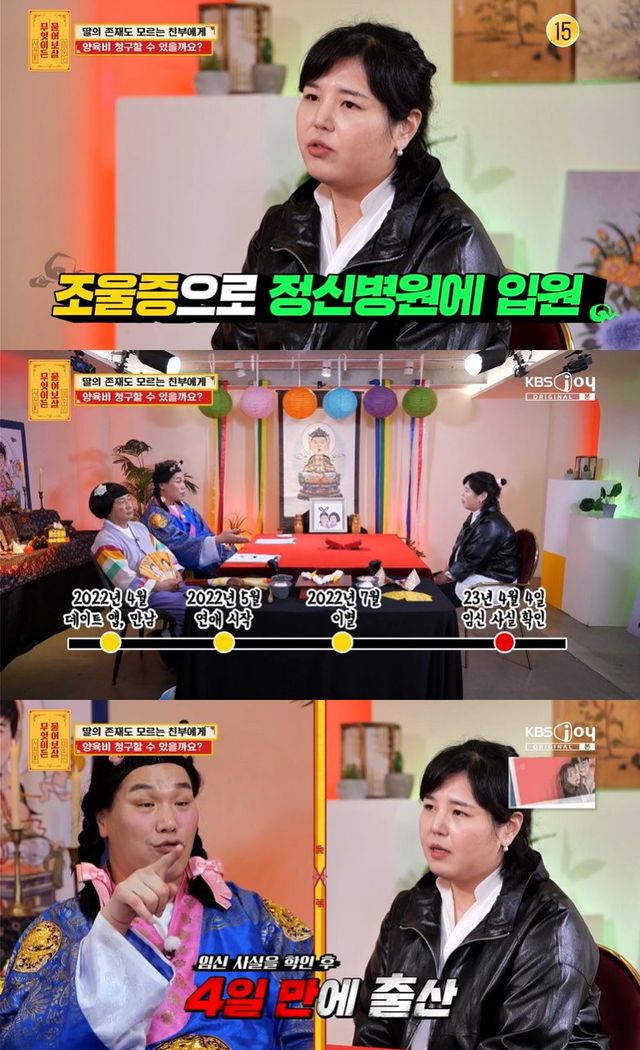 이후 조울증으로 인해 정신병원에 입원하게 된 사연자는 "병원에서 임신 같다고 하더라"며 출산 마지막 달까지 임신 사실을 몰라 임신 사실 확인 후 4일 만에 출산을 하게 됐다고.