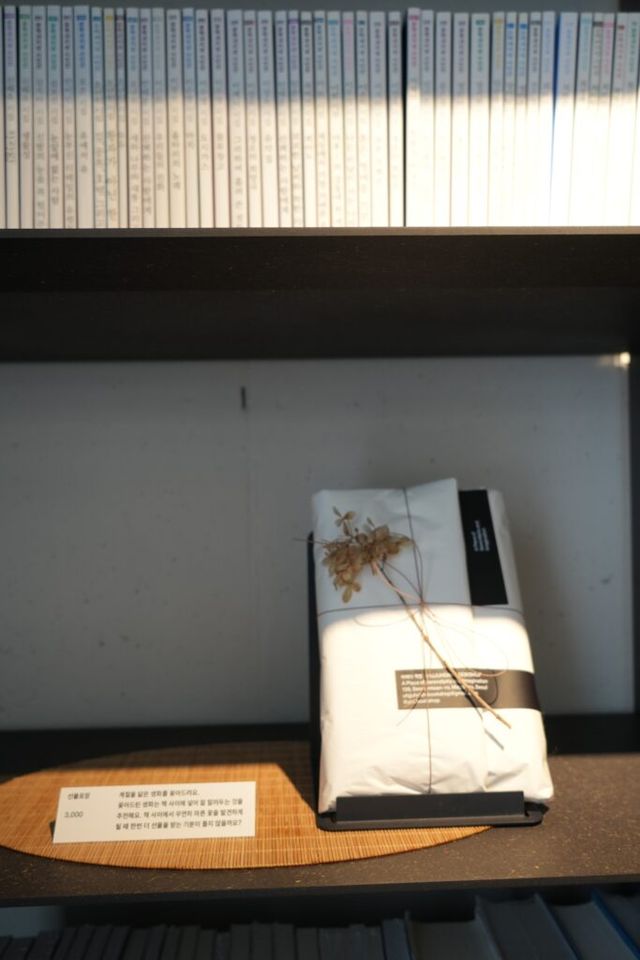 에디터의 마음을 사로잡은 공간은 ‘뜻밖의 샛길’이라는 이름의 서가 한 줄입니다. 빼곡하게 들어선 책장 사이 비워둔 이 작은 여백에서는 분야별 신간, 정성스럽게 포장된 책, 작가의 친필 사인본 등 작지만 특별한 만남이 펼쳐지는데요. 혹시라도 빽빽한 책들 사이에서 잠시 숨이 막히는 기분이 들었다면, 이 샛길에서 생각지 못한 여유와 기분 좋은 발견을 경험해보길 바라요.