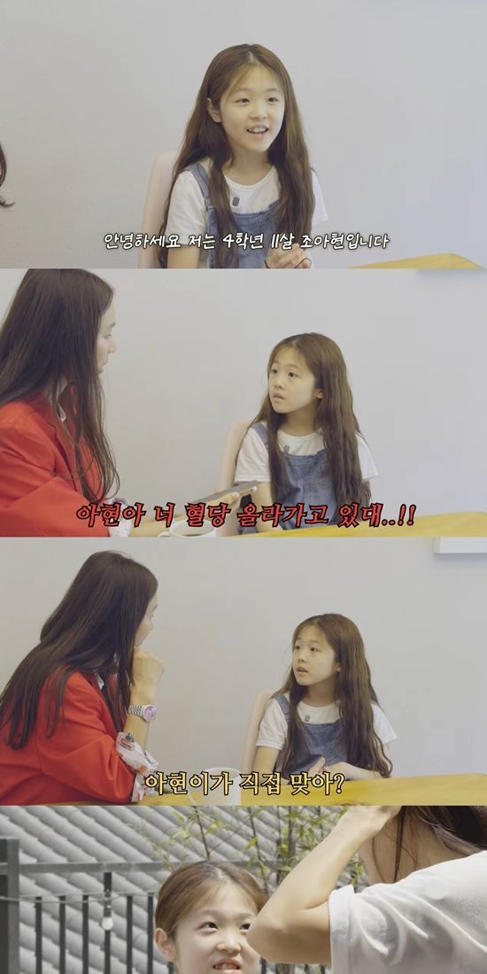 윤현숙은 유튜브 채널 시청자들을 위해 아현 양에게 자기소개를 부탁했다. 아현 양은 "안녕하세요. 저는 4학년 11살이고 이름은 조아현입니다. 저는 피아노를 좋아하고, 태권도, 가야금, 영어도 좋아해요"라고 말했다.
