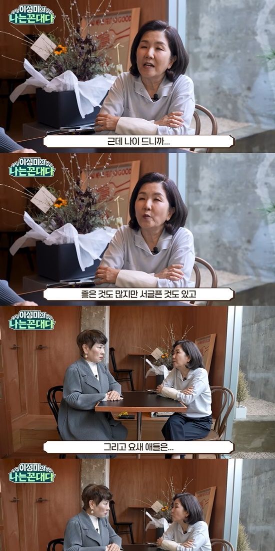당장 내일 죽어도 자연스러운 나이라 자신감이 없어진다는 말에 이성미는 "위축된다"며 공감했다. 이어 "요새 애들은 너무 쭉쭉빵빵하다. 그런 애들을 보면 이상하게 기분이 나쁘면서 '나는 뭐 하느라고 안 컸지?' 이런 생각이 든다"며 고백하기도 했다.