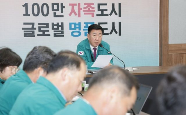 임시청사 소회의실에서 이범석 청주시장 주재로 진행된 이날 회의는 각 부서 실・국・소장과 구청장들이 참석한 가운데 진행됐다.
