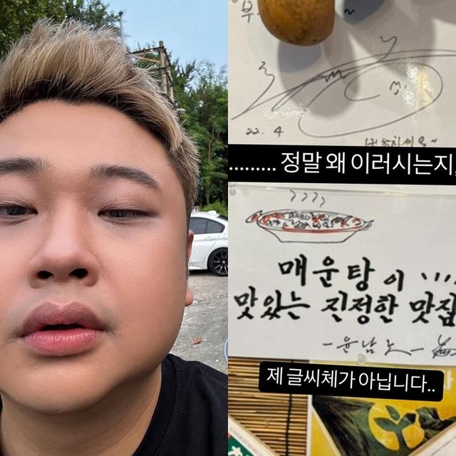 게시물에는 누군가 윤남노를 사칭해 “매운탕이 맛있는 진정한 맛집”이라고 허위 후기를 작성했다. 이에 윤남노는 “제 글씨체가 아닙니다”라며 억울함을 드러냈다.