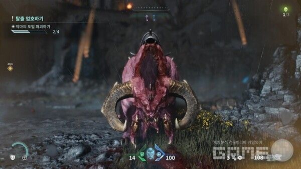 이번 전투에서는 방패가 생각보다 많은 비중을 차지한다. 방패를 들고 빠르게 돌진하며 적을 공격하거나 거리를 좁히고 방패에 톱날을 달아 근접 공격을 하고… 총기로 난사하고 적의 공격을 피하는 감각적인 전투와 달리 상황에 맞게 생각하며 전투를 진행해야 한다고 할까? 그래서 이번 게임은 ‘둠’ 시리즈의 새로운 발전과 변화를 느낄 수 있다. 물론 ‘둠’ 특유의 고어한 표현과 화끈한 액션은 여전하다. 이번 게임은 근접 공격으로 적을 처치해야 탄약을 얻을 수 있고, 또 적이 발사하는 투사체를 방패로 방어하고 녹색 투사체(헬 서지)는 쳐내기를 하는 등 액션의 상당수가 방패에 집중됐다. 쳐내기는 적을 잠시 경직시키기도 하기 때문에 필수 기술이라고 생각해도 무방하다. 하지만 쳐내기에 대한 부담감을 가질 필요는 없다. 이 게임은 설정에서 쳐내기에 대한 타이밍을 조절할 수 있어 판정을 널널하게 만들 수 있다.