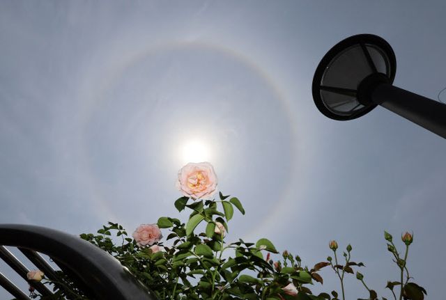 13일 광주 동구 조선대학교 장미원 하늘 위로 햇무리가 나타나 있다. (사진=연합뉴스)