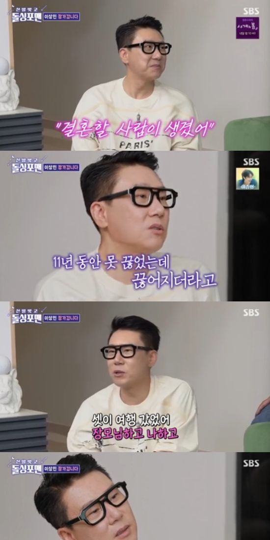 멤버들의 반응에 이상민은 "안 믿을 거라는 걸 알았는데, ('돌싱포맨' 멤버들이) 가장 먼저 알았으면 해서 얘기를 한다. 준호보다 빨리할 것 같다"면서 "아내 덕분에 11년만에 공황장애 약을 끊었고, 담배도 끊었다"고 했다.