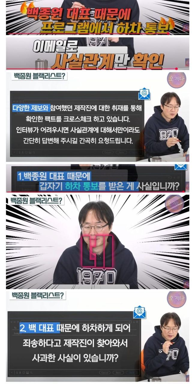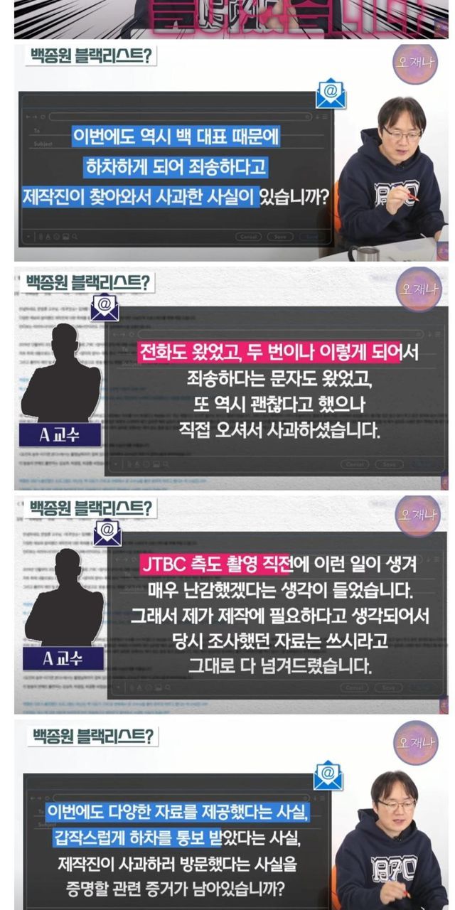하다하다 서울대 교수도 방송에서 하차시킨 백종원