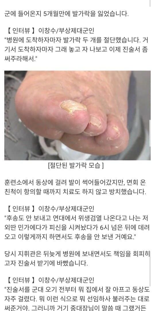 군 복무 중 발가락 2개 절단에도 보상 한 푼 없다는 나거한