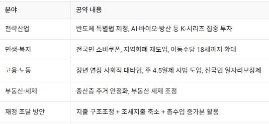 전략산업 분야에서는 정부가 직접 산업 생태계를 설계하고 예산을 투입하는 방식이 특징이다. 이 후보는 공약에 반도체 특별법 제정, 방산 수출 지원체계 구축, 글로벌 콘텐츠 플랫폼 확대, AI·바이오 등 미래산업에 대한 전방위적 투자 계획을 담았다.