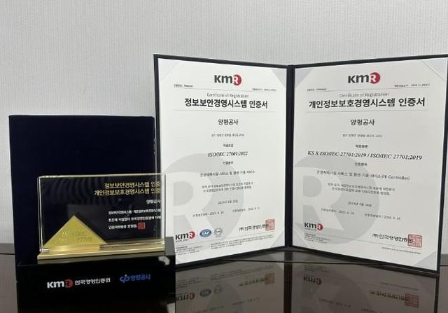[와이뉴스] 양평공사는 지난 4월 18일 한국경영인증원(KMR)으로부터 정보 보안 경영시스템 국제표준 ‘ISO/IEC 27001’과 개인정보보호 경영시스템 국제표준 ‘ISO/IEC 27701’ 인증을 동시에 획득했다고 밝혔다.