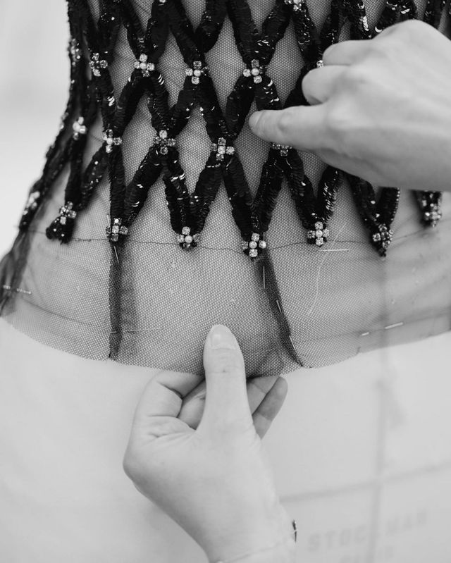 두아리파는 백 리스 스타일의 코르셋 커스텀 드레스를 크리스털과 진주로 채우며 여신의 자태를 뽐냈습니다. 오픈 백 스타일의 롱 드레스는 밤하늘의 반짝이는 별처럼 진주와 크리스털이 가득 수 놓아져 있었죠. 시폰 코르셋과 깃털 페플럼, 시퀸 장식의 트위드 재킷까지. 모두 진주와 크리스털로 물들었습니다.