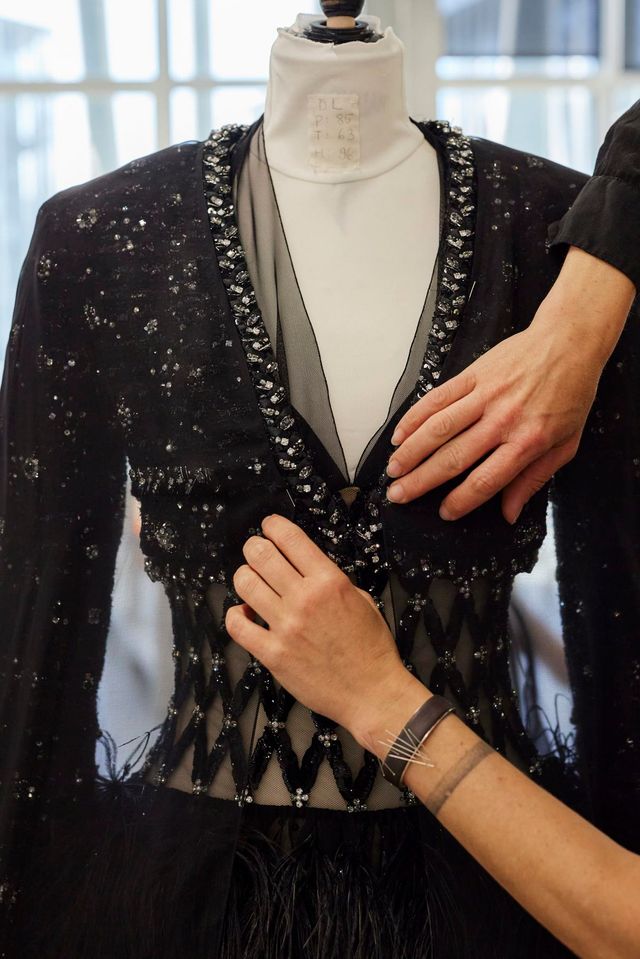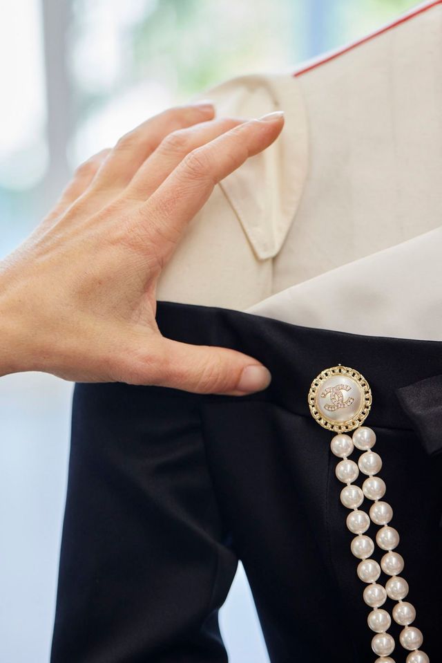 무려 330시간에 걸쳐 제작된 제니의 커스텀 의상은 1987년 샤넬 컬렉션으로 어깨를 드러낸 블랙 점프슈트, 같은 소재의 오버스커트, 진주 스트링 장식과 화이트 실크 까멜리아 브로치, 그리고 리본으로 묶은 업 헤어에 둘러쓴 햇이 완벽한 젠틀 우먼을 연상시키며 강렬한 존재감을 뽐냈습니다.